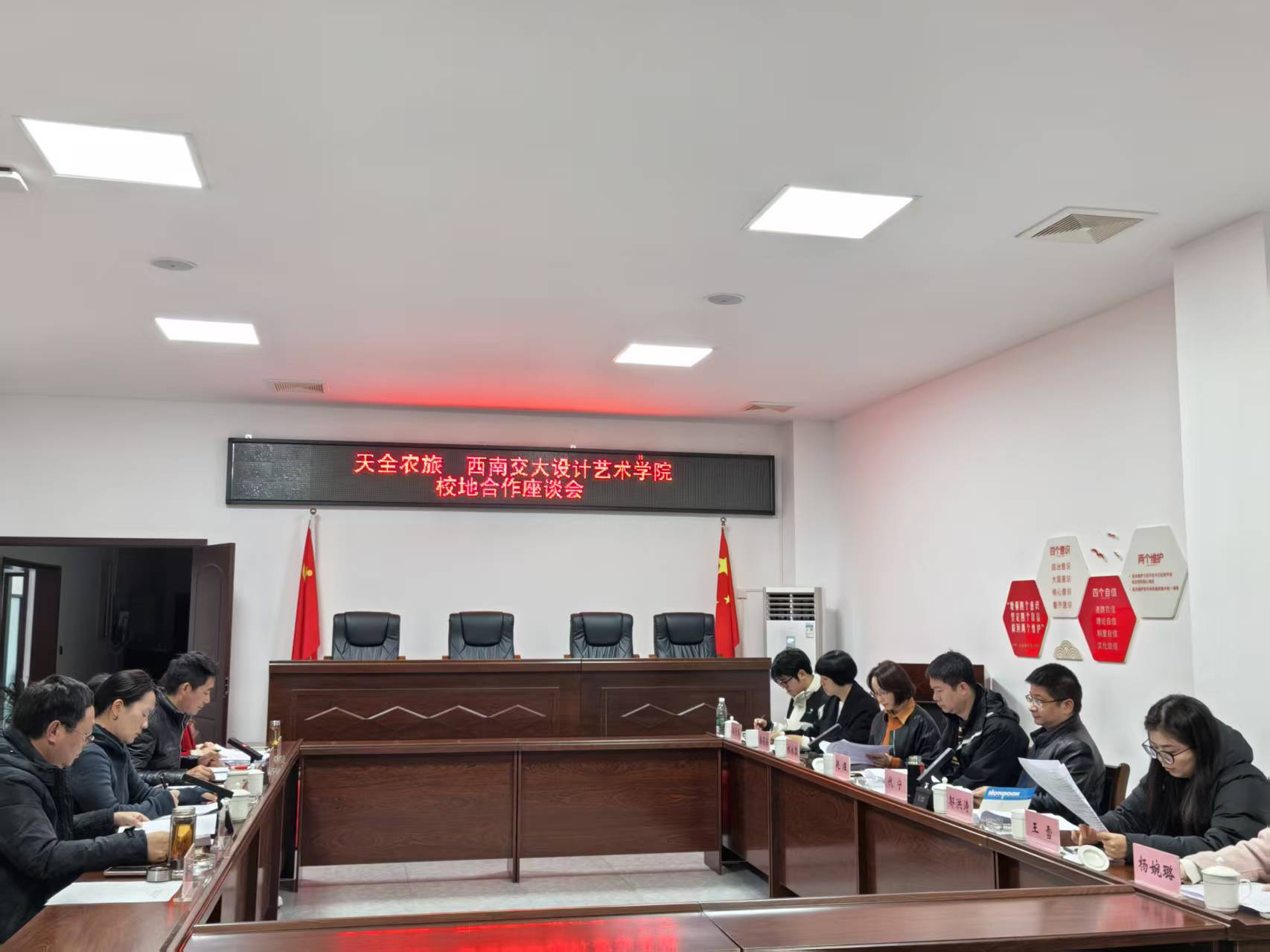 11月24日下午,代宁一行与天全县文化广播电视体育和旅游局、天全县农旅投资开发有限公司举行座谈。天全县文广旅局局长邱羿方对西南交大设计艺术学院长期以来对地方发展的支持表示感谢,并简要介绍了天全县在文旅融合、红色资源挖掘等方面的工作进展。座谈会上,天全县农旅投公司党总支书记、董事长顾学清详细介绍了天全县“红旅融合高质量发展”的整体思路与实践成果。