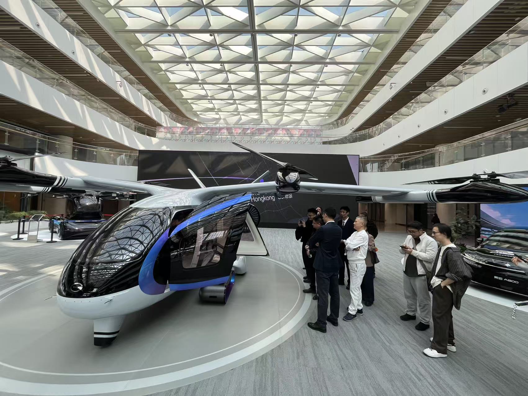 在集团讲解员引导下,代宁一行参观了最新研发汽车、飞行器及汽车能源技术展区,直观感受广汽在智能网联、新能源动力等领域的设计与技术融合成果。