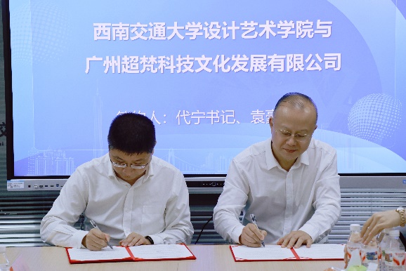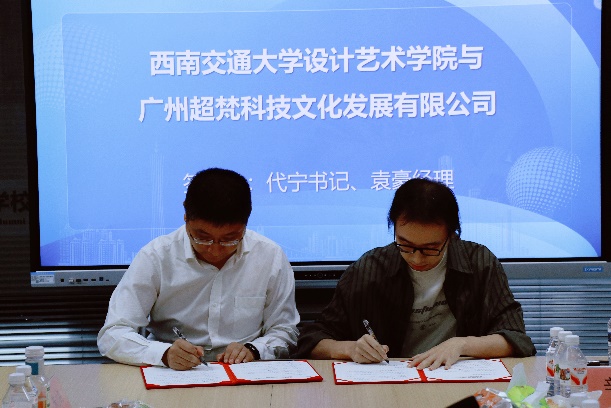 在战略合作签约仪式上,设计艺术学院党委书记代宁代表学院,与广州超梵科技文化发展有限公司等4家广东校友企业完成战略合作签约,涵盖低空经济、科技文化、信息技术、智慧城市等领域,标志着学院与大湾区产业的合作迈入新的阶段。