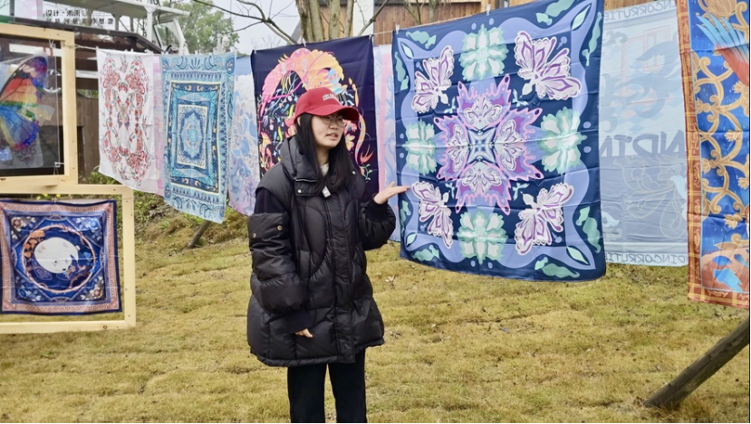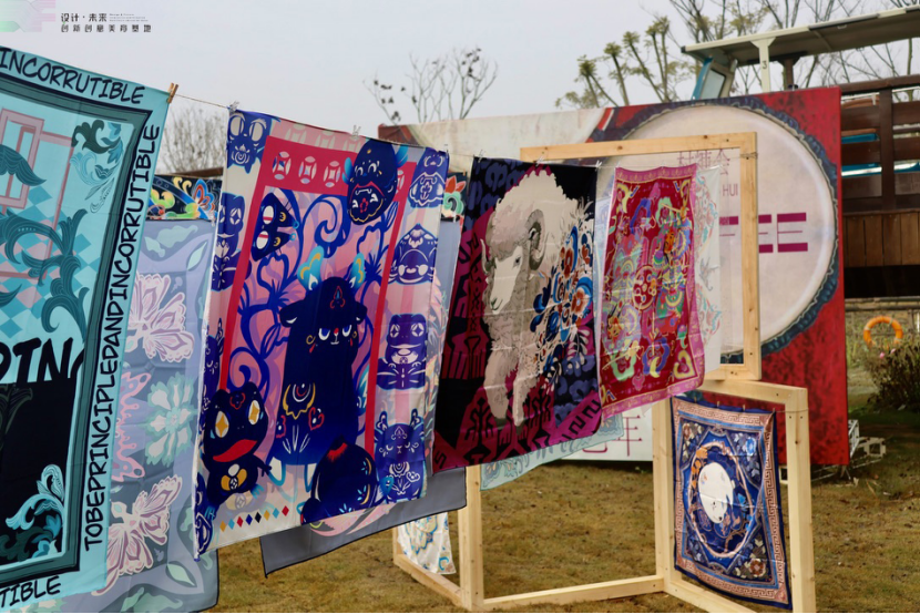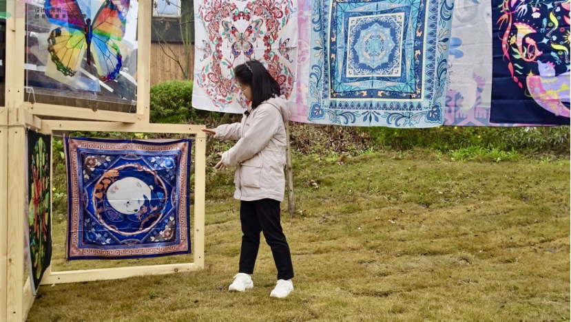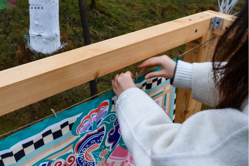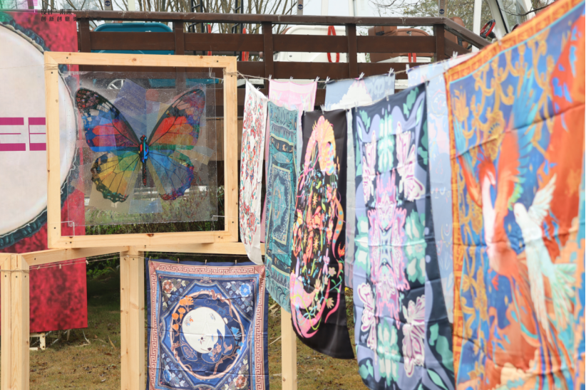 · 将设计完成的丝巾逐一悬挂,让蝴蝶图案在风里“晾出飞翔”;