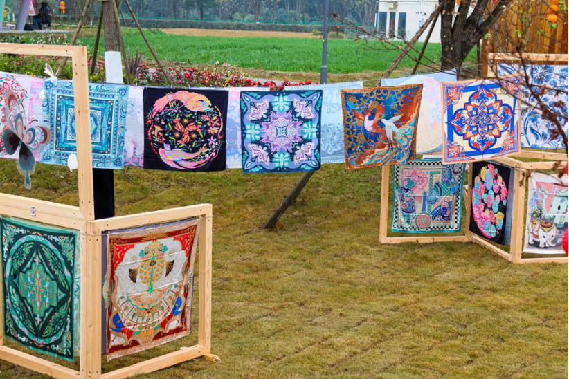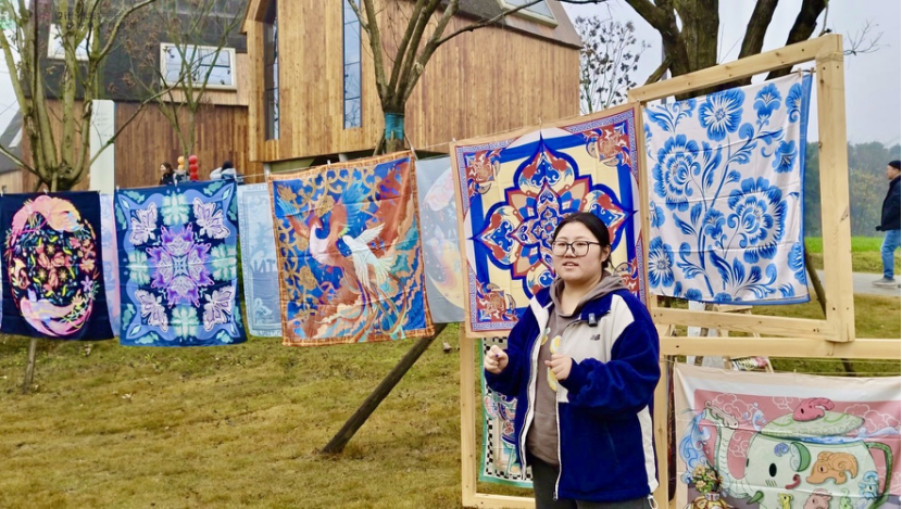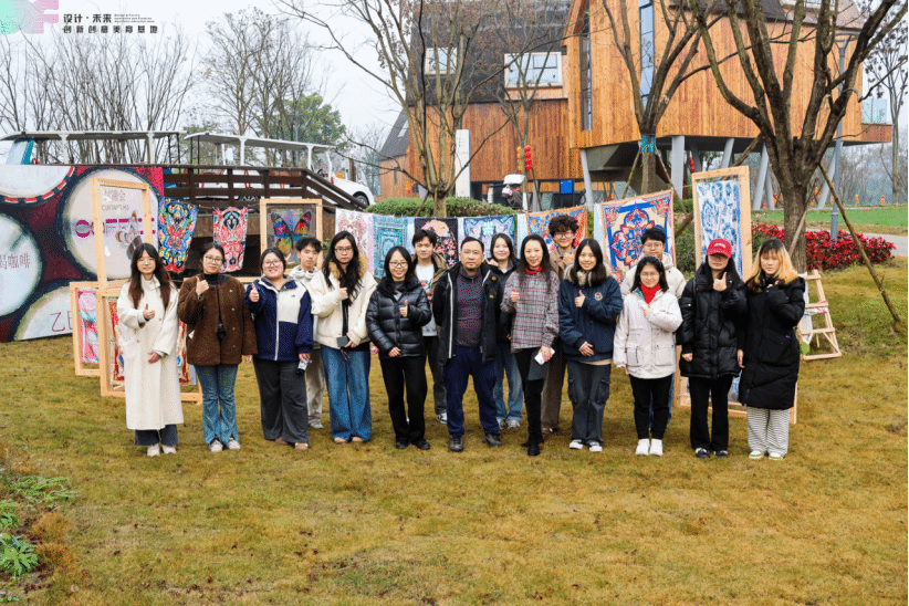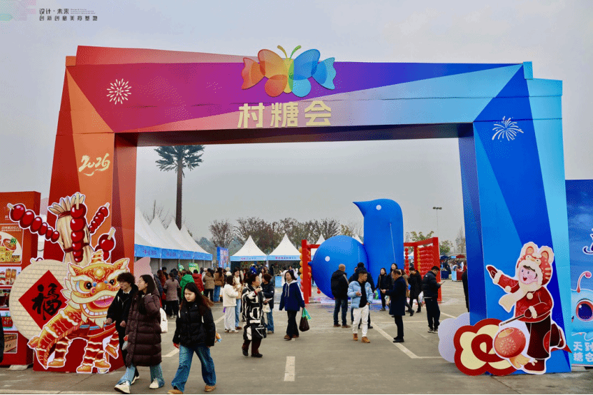 2025年12月31日,在成都市郫都区蝴蝶村举办的郫都“浸享鹃城甜·乐游蝶村年”村糖会启动仪式现场,西南交通大学设计艺术学院依托“设计·未来”创新创意美育基地组织师生开展“想象·丝路@蝴蝶村的甜野”参与式公共策展活动。基地主任王玮老师、副主任陈立民老师,王永亮老师,设计艺术学院小物创意设计社团负责人赵菁老师、研究生会负责人冉珈维老师、学生会负责人彭栎而老师,以及来自全校不同专业不同年级的同学们共同参与布展完善、开幕活动、作品导览讲解,推动公共艺术装置《蜜语在田野》在节庆人群与乡村公共空间中落地呈现与传播,完成从“作品制作”到“公众沟通”的“最后一公里
