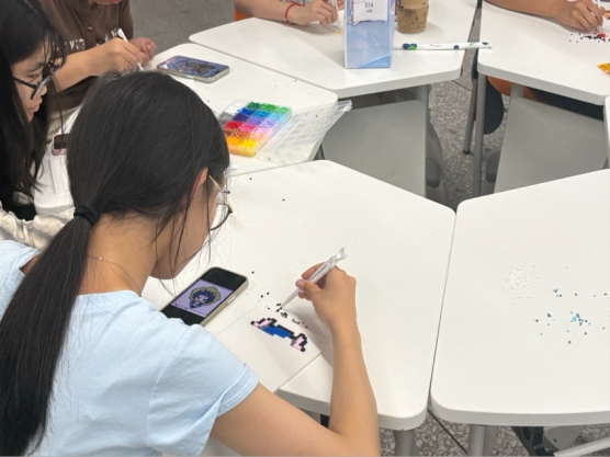 “拿起豆子时,心就静了下来。”许多同学表示,拼豆如同“指尖冥想”——专注地选取、细致地摆放、期待地成型,让学业压力在手工节奏中悄然舒缓。