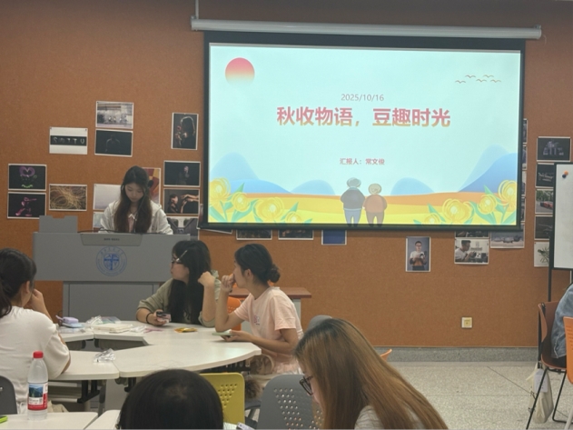开场环节中,主讲人常文俊通过主题分享,梳理拼豆技艺的文化脉络,引导同学们从“秋之意象”走向“豆之表达”,搭建起从感知到创作的美学桥梁。