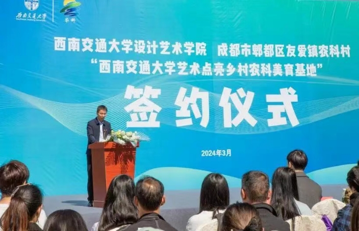 图二:西南交通大学设计艺术学院负责人与农科村负责人上台签约