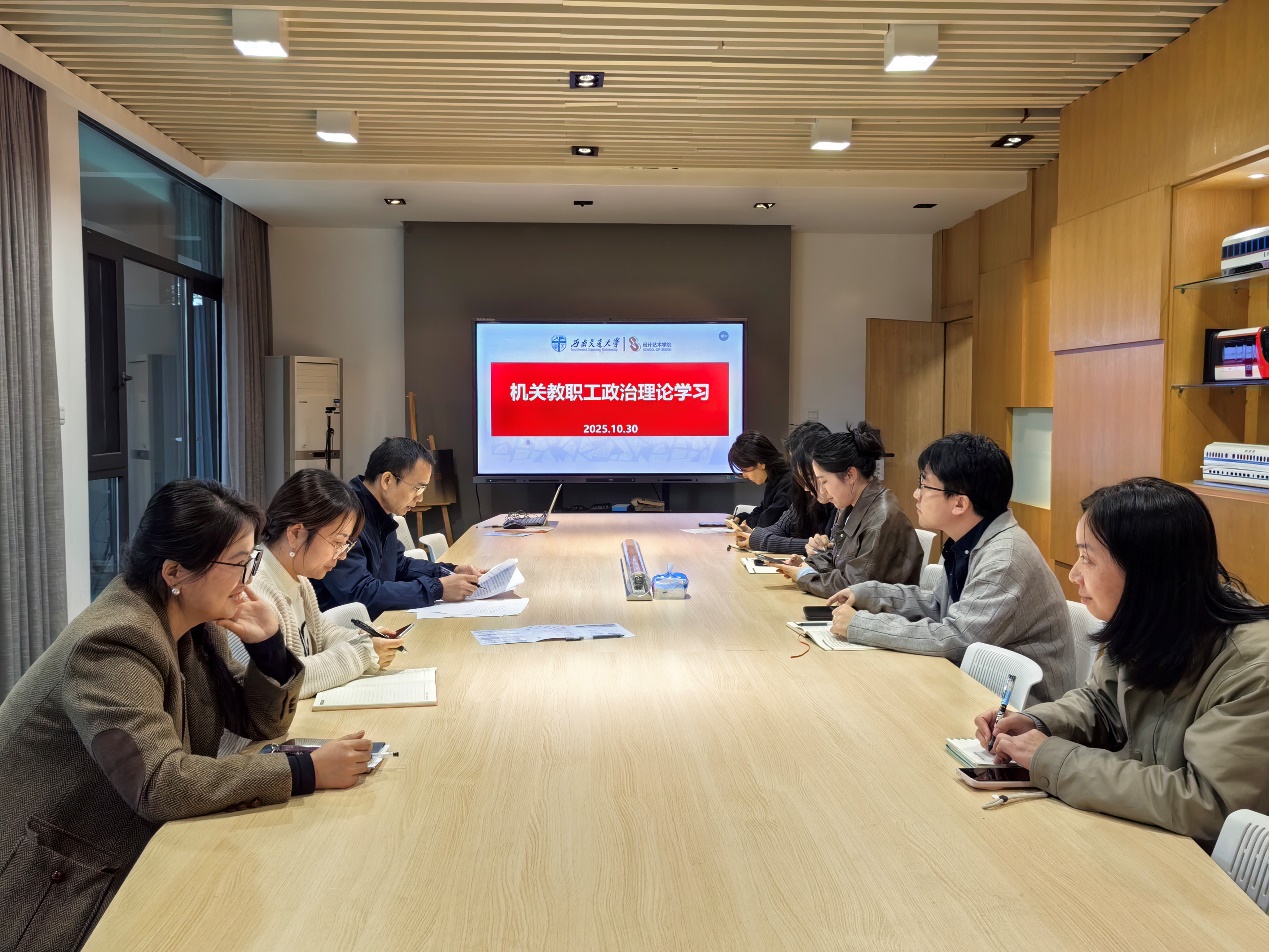 2025年10月30日上午,学院机关党支部组织开展了2025年第六次教职工政治理论学习,专题学习习近平总书记近期重要回信、重要讲话精神及中央重要会议精神。会议由党支部书记邬洪涛主持,学院机关全体教职工参加学习。