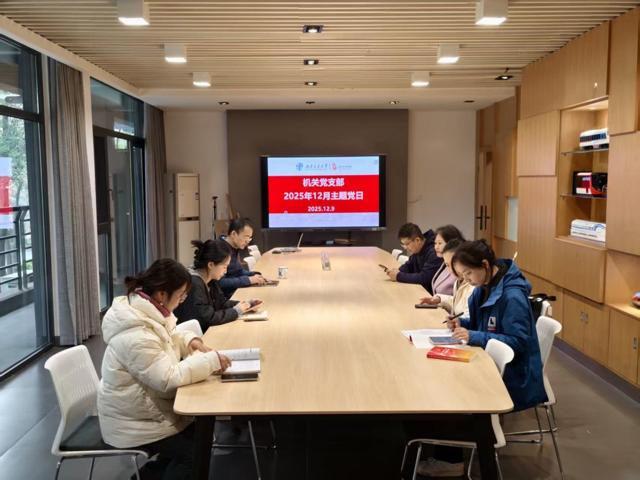 12月9日下午,机关党支部在8210会议室开展主题党日活动,专题学习党的二十届四中全会精神。会议由党支部书记邬洪涛同志主持。活动以“学习宣传贯彻党的二十届四中全会精神,以教育强国建设支撑引领中国式现代化”为主题,通过集中领学、党员交流研讨的形式,推动理论学习走深走实。