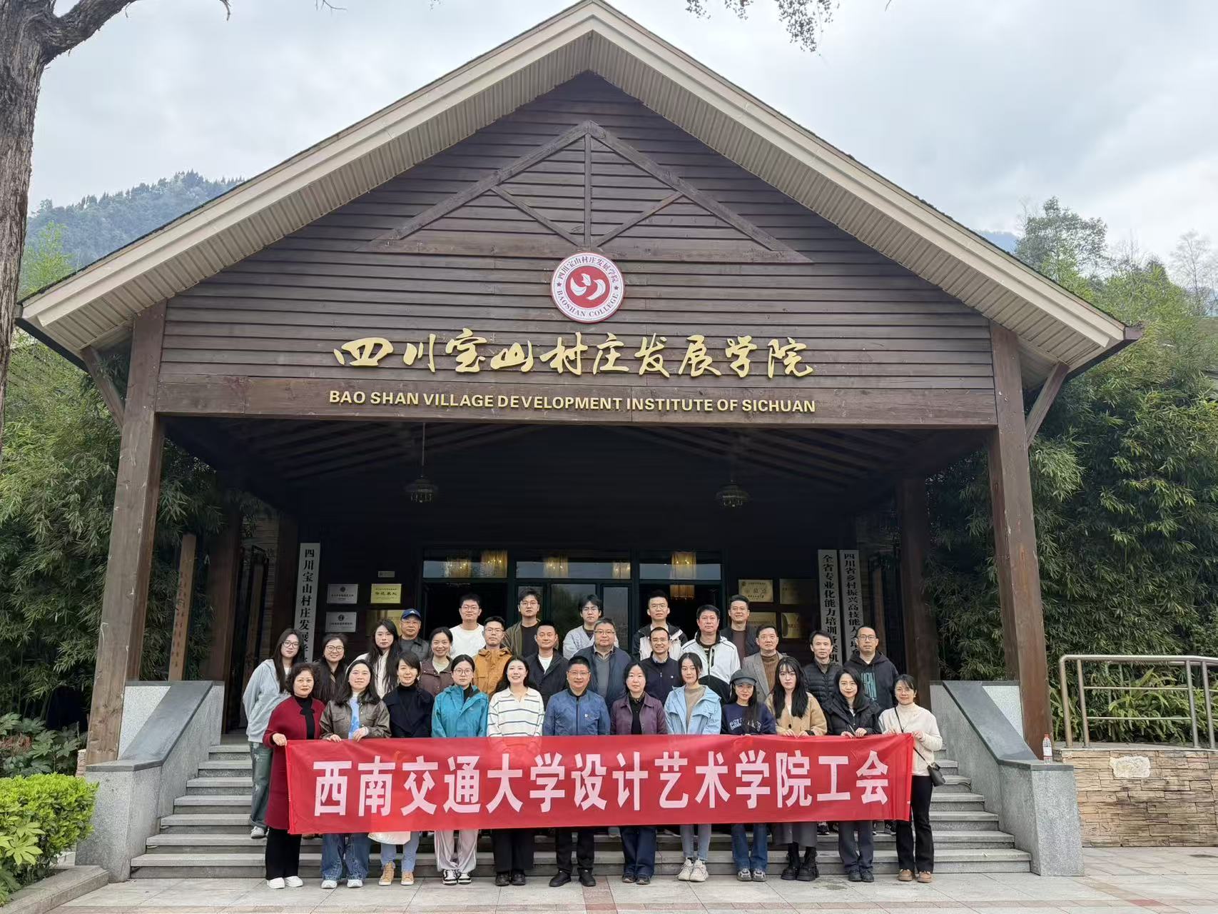 春风送暖,万物复苏,在“三八”国际劳动妇女节来临之际,为丰富教职工业余文化生活,增进情谊与团队凝聚力,让退休老同志感受春日美好,3 月 6 日,西南交通大学设计艺术学院工会组织全体教职工及退休老同志,在党委书记代宁、院长支锦亦、工会主席赵煜的带领下,前往彭州市龙门山镇宝山村开展文旅融合及乡村振兴示范点参观学习暨纪念“三八”妇女节系列活动,在青山秀水间放松身心,共赴一场春日之约。